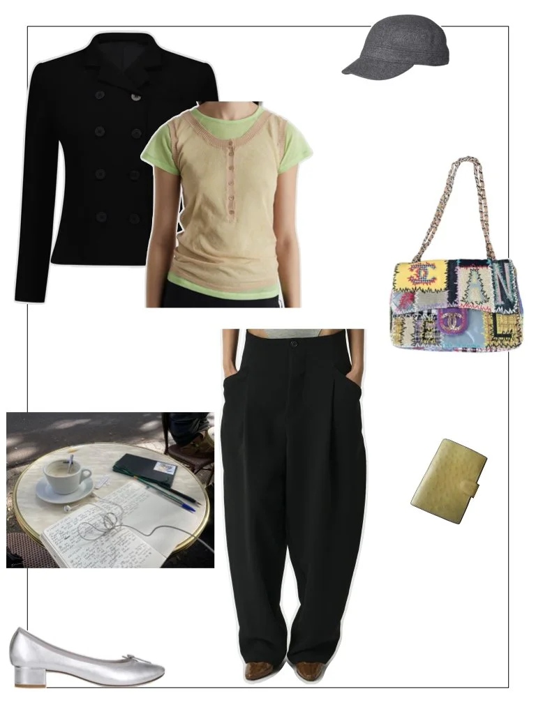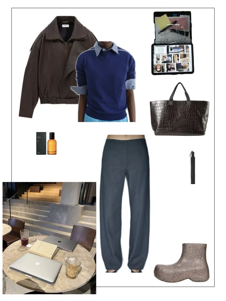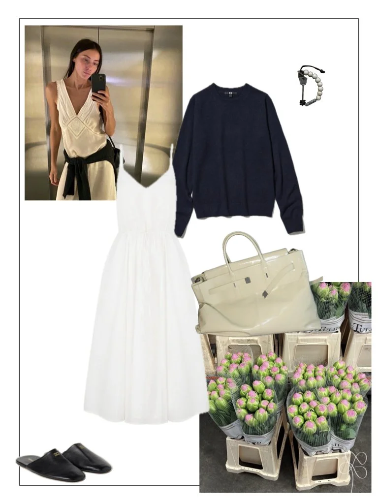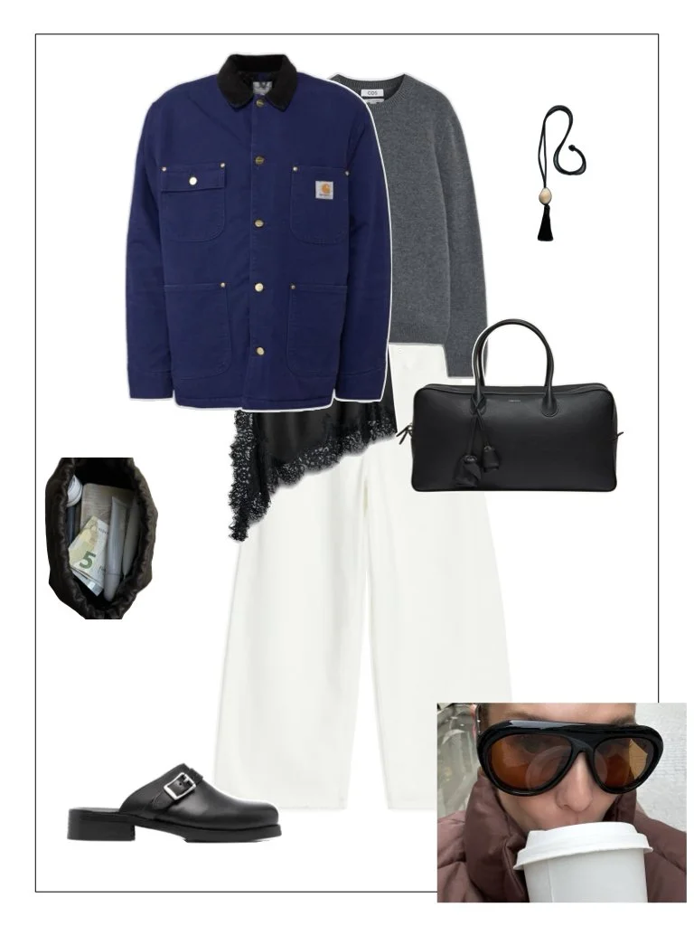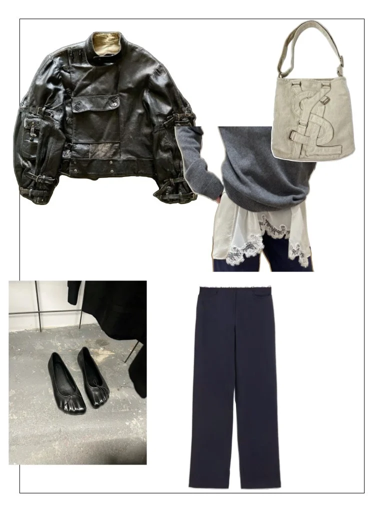 jacket vintage (similar here), sweater & dress the row (similar here), trousers paloma wool, bag yves saint laurent (similar here), ballerinas balenciaga