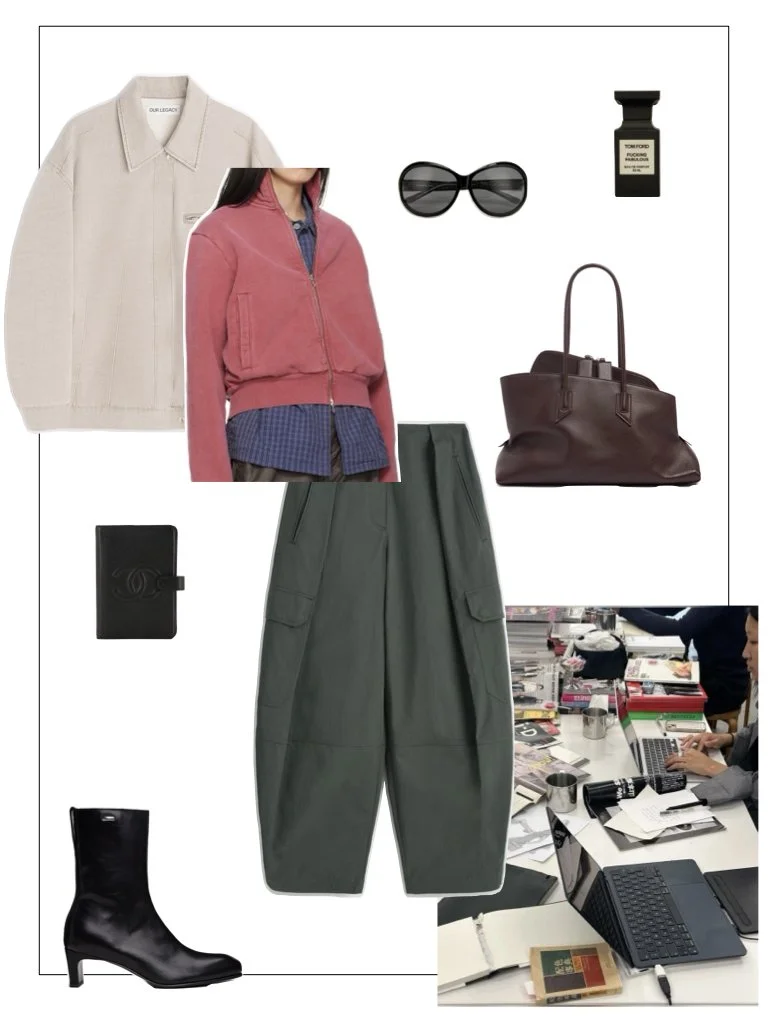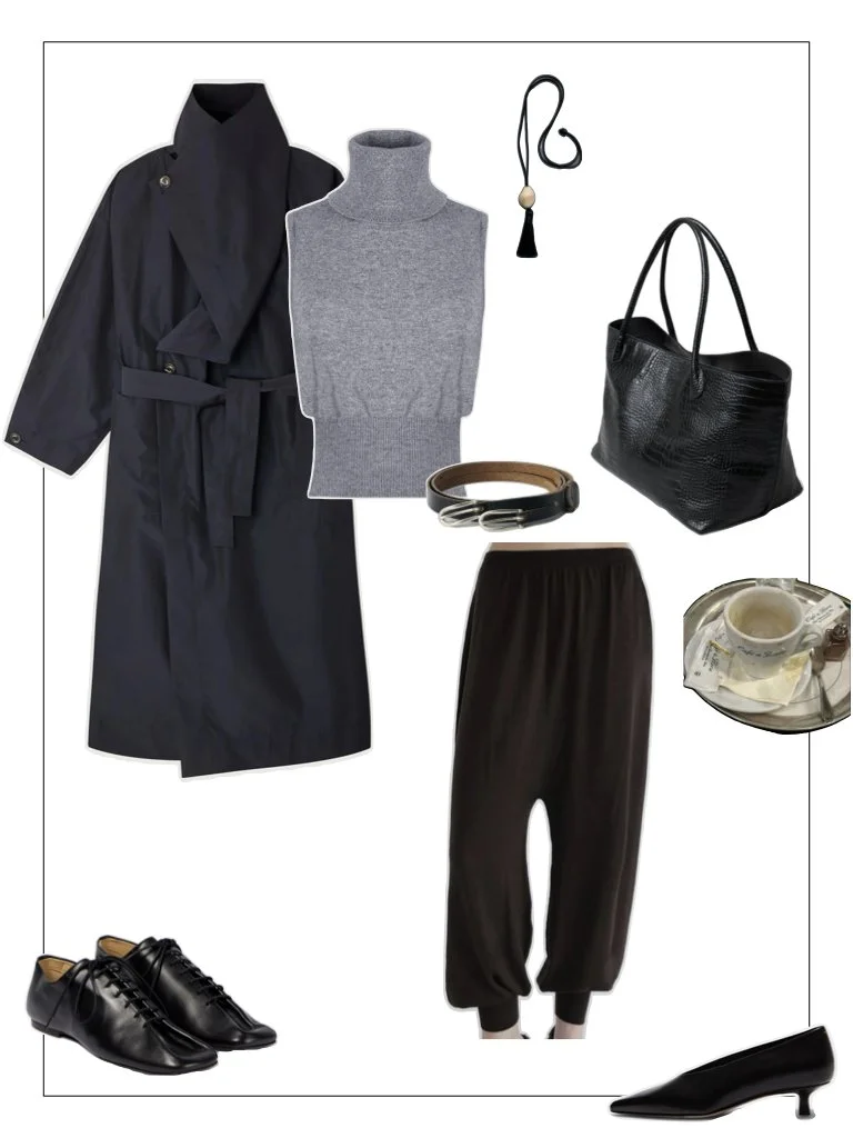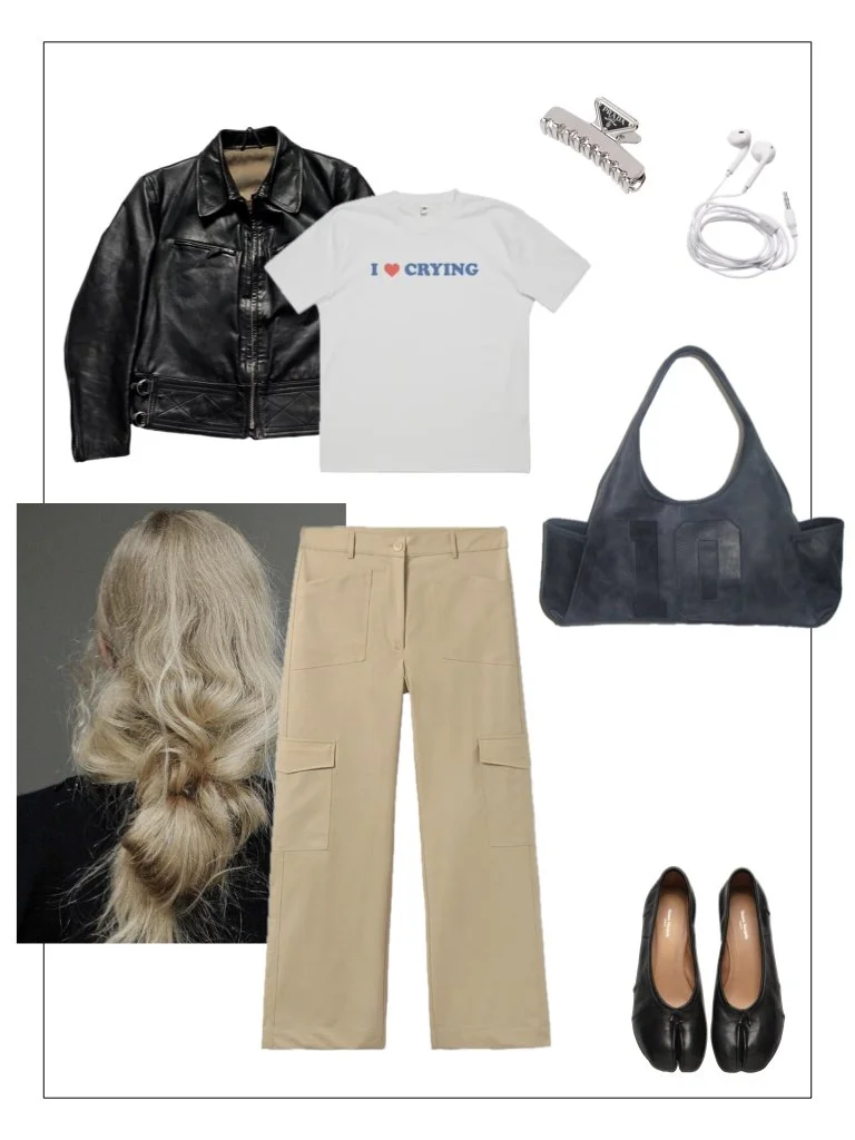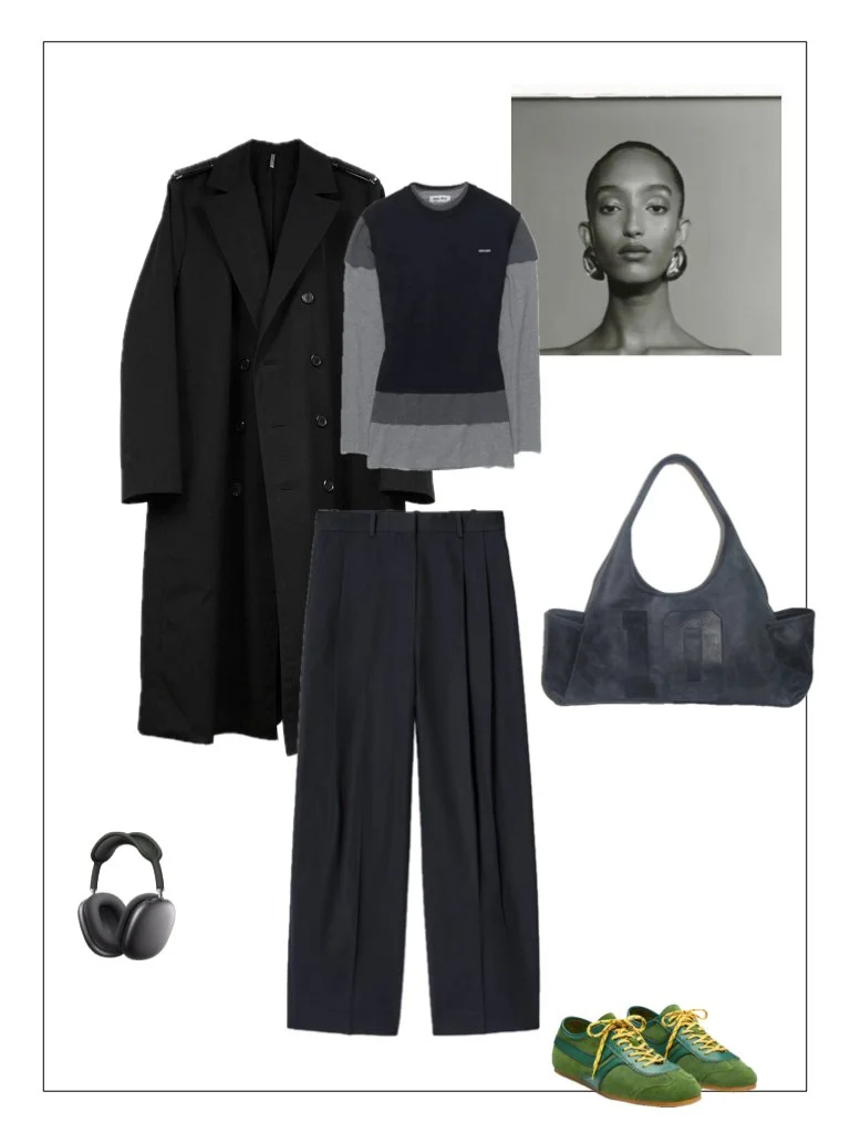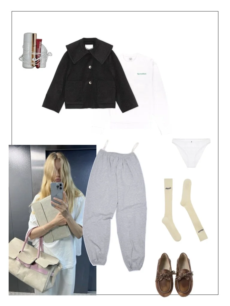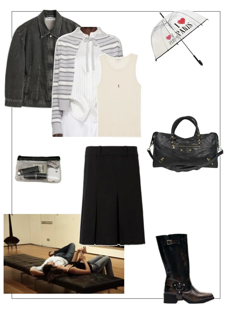 jacket vintage (similar here), sweater & dress the row (similar here), trousers paloma wool, bag yves saint laurent (similar here), ballerinas balenciaga