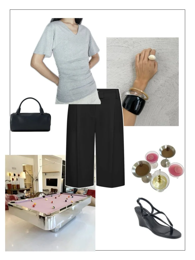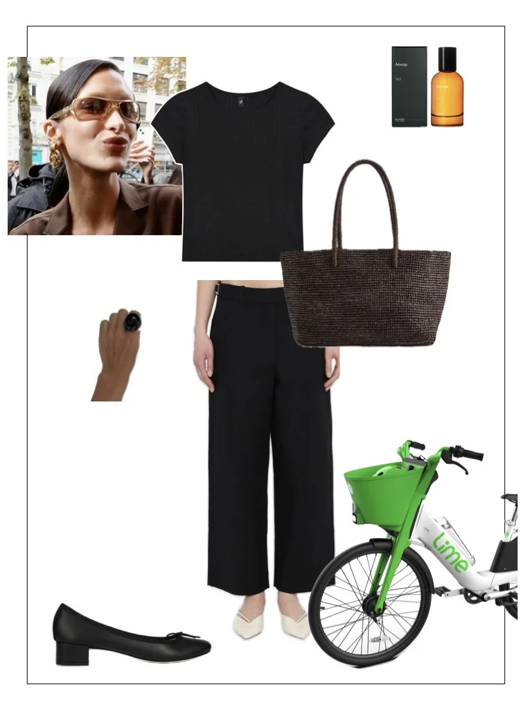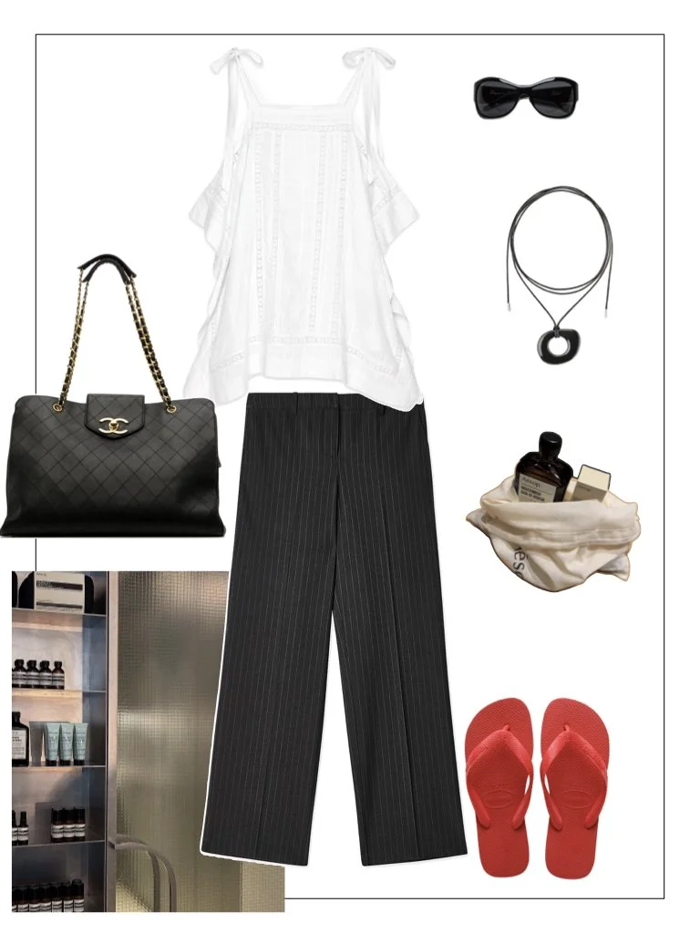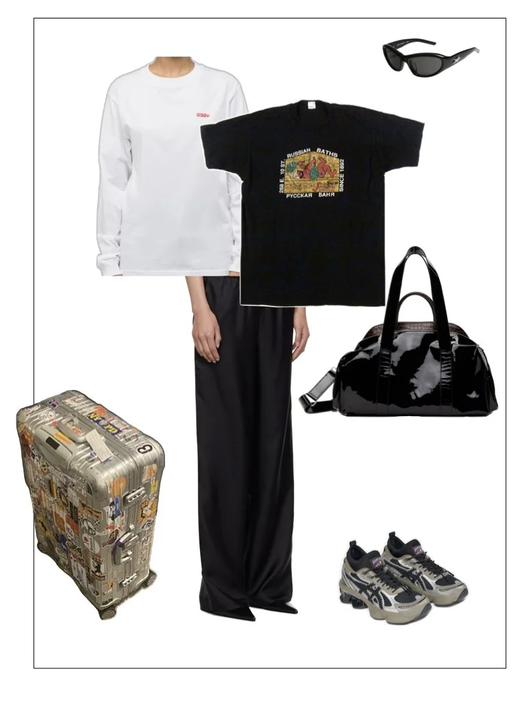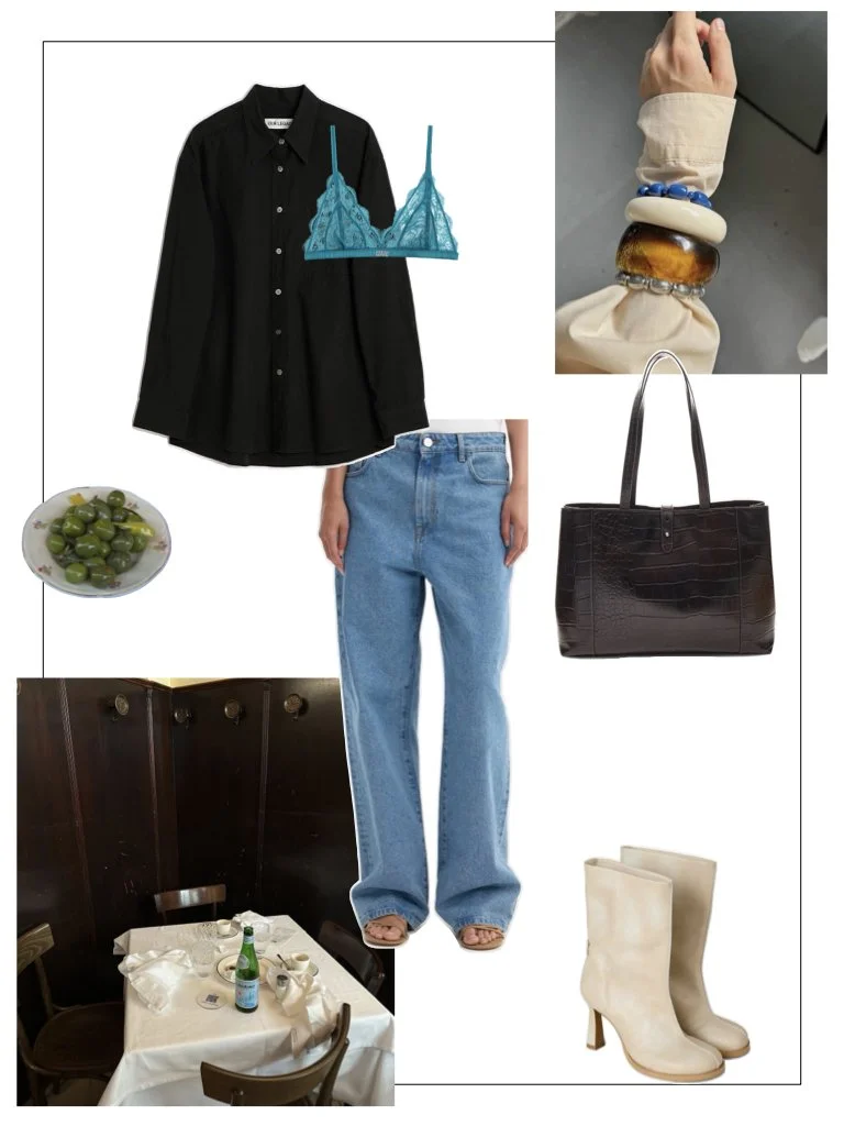 jacket vintage (similar here), sweater & dress the row (similar here), trousers paloma wool, bag yves saint laurent (similar here), ballerinas balenciaga