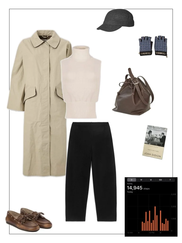 trench coat barbour, sleeveless turtleneck zodiaque, trousers arket, bag aff ager, boat shoes miu miu, cap kernemilk, gloves vintage chanel (similar here)