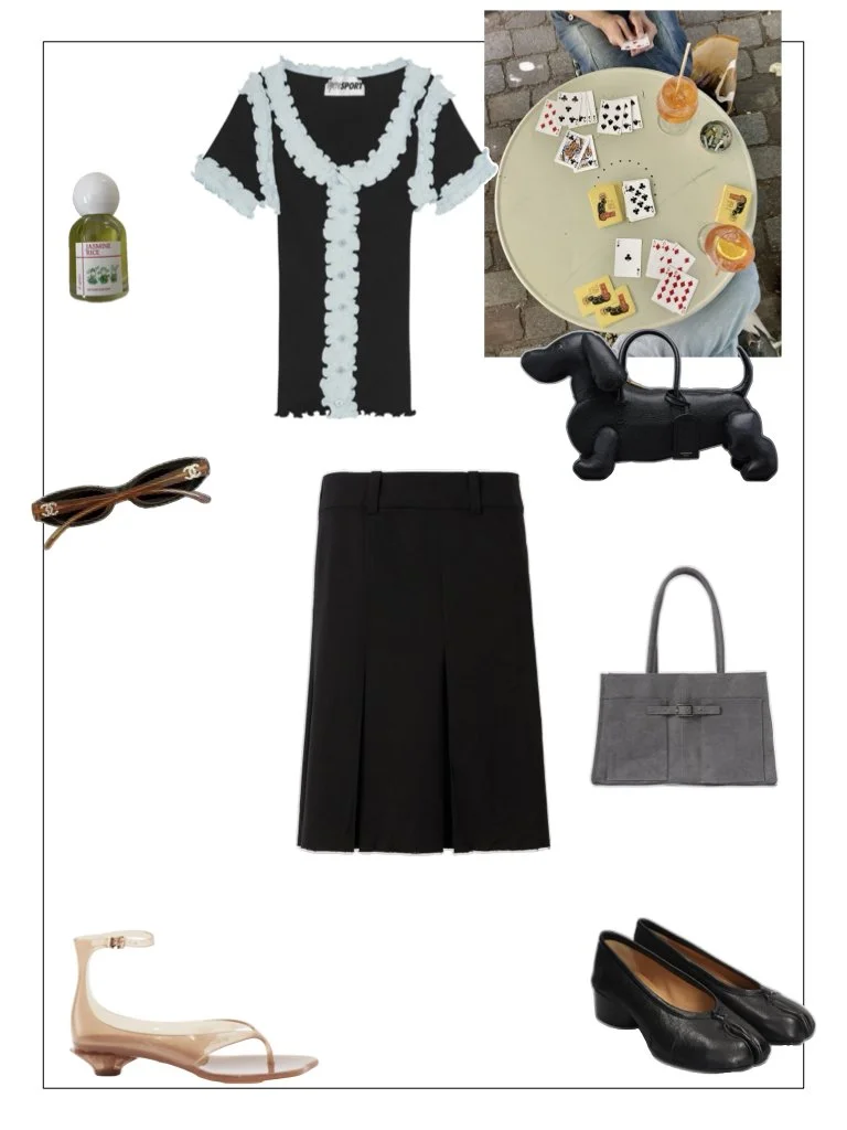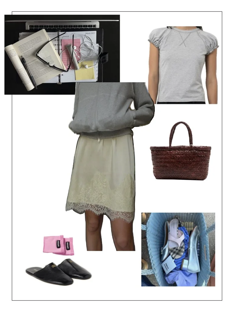set (skirt, bra, cardigan) cou cou intimates, dress cou cou intimates, bag dragon diffusion, vintage ballet flats chanel (similar here),