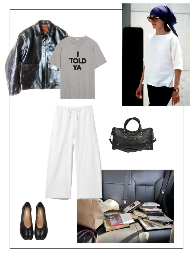 jacket vintage (similar here), t-shirt loewe, trousers weekday, bag balenciaga, tabi maison margiela, headkerchief vintage (similar here)
